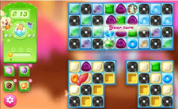 This level has medium difficulty. For this level try to play from top and where more candies are available to play. Save some special candy and use more striped candy to break more blockers to find more pufflers.