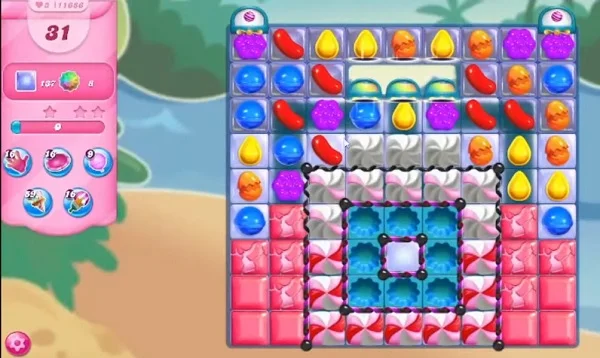 This level has hard difficulty. For this level try to play near to blockers and jellies. Use more striped candy or play near jellies to break them all within 31 moves.