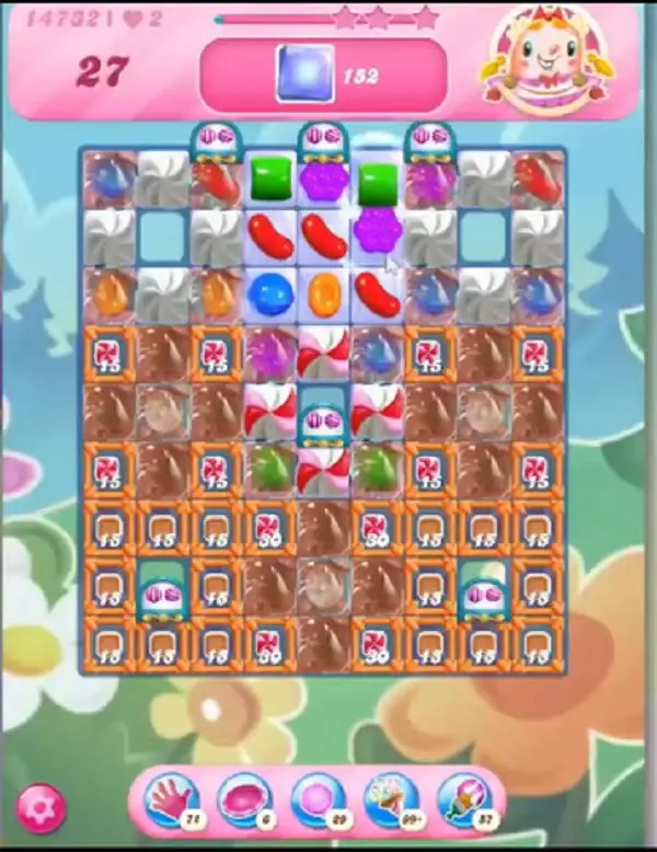 - Clear all 76 jellies and reach 152,000 points to complete the level.