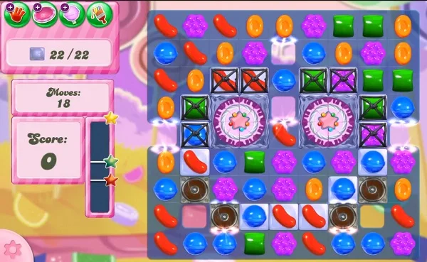 This level has hard difficulty. For this level try to play from bottom part of the board and make special candy. Combine special candies with each other or play near to cake to break them. Or play near to remaining jelly candy to break them all within 18 moves.